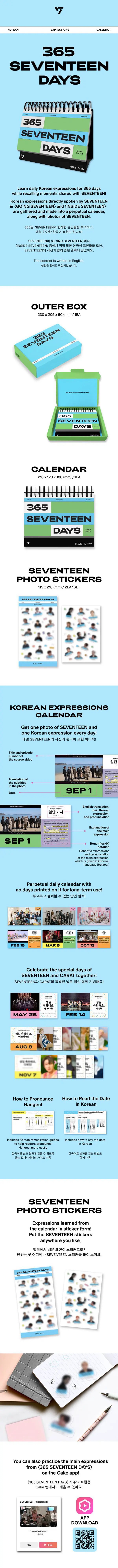 Korean expressions directly spoken by SEVENTEEN in and are gathered and made into a perpetual calendar, along with photos of SEVENTEEN.
