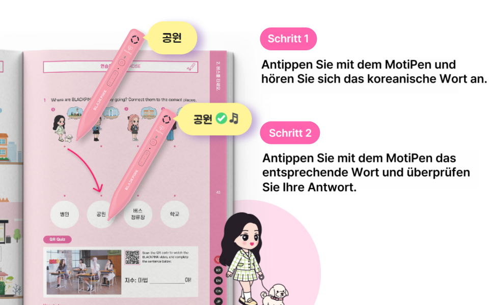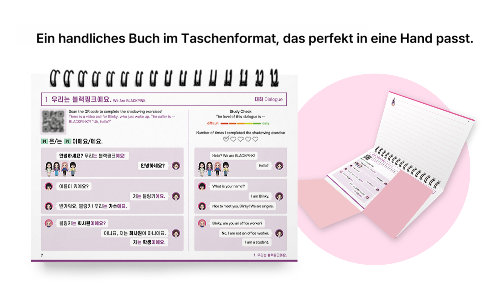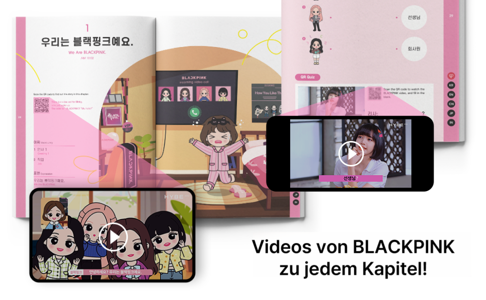 Lerne wichtige Wörter, praktische Redewendungen und interessante kulturelle Hintergründe – auf unterhaltsame Weise mit Blackpink in zwei liebevoll gestalteten Büchern.