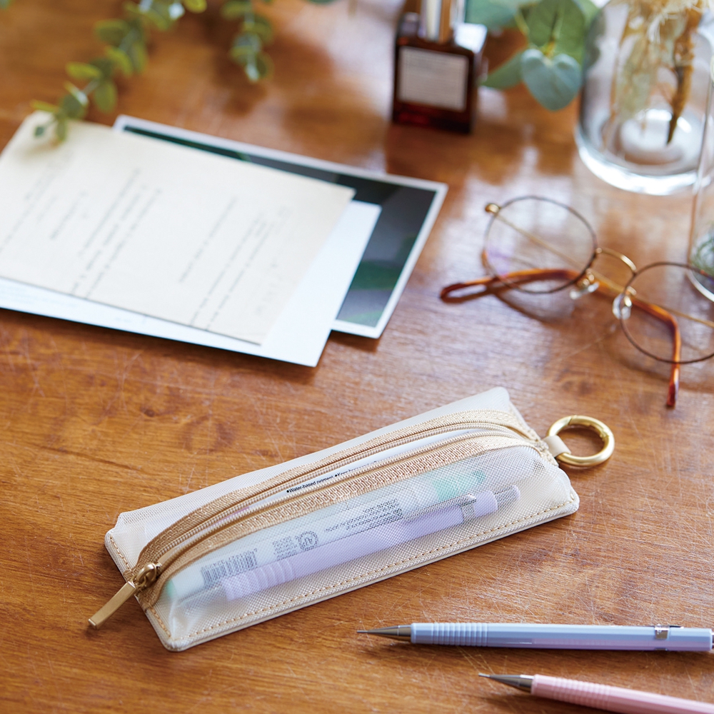 EMILY Mesh Federmäppchen (Beige) Flat Pen Case | by KING JIM Japan