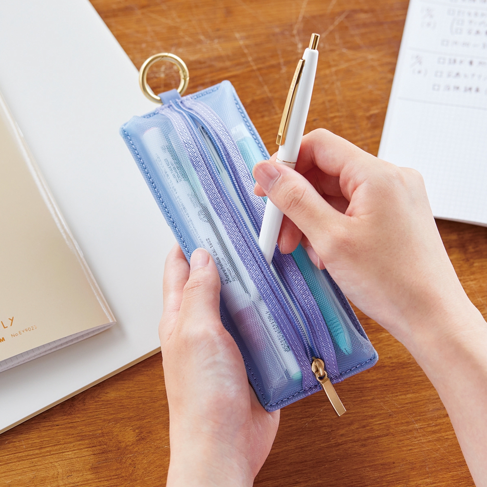 EMILY Mesh Federmäppchen (Blue Grey) Flat Pen Case | by KING JIM Japan