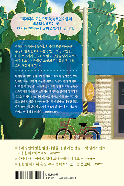 김지윤 장편소설. 연남동 골목길에 자리 잡은 빙굴빙굴 빨래방. 그곳엔 신기한 다이어리가 있다. 누군가 빨래를