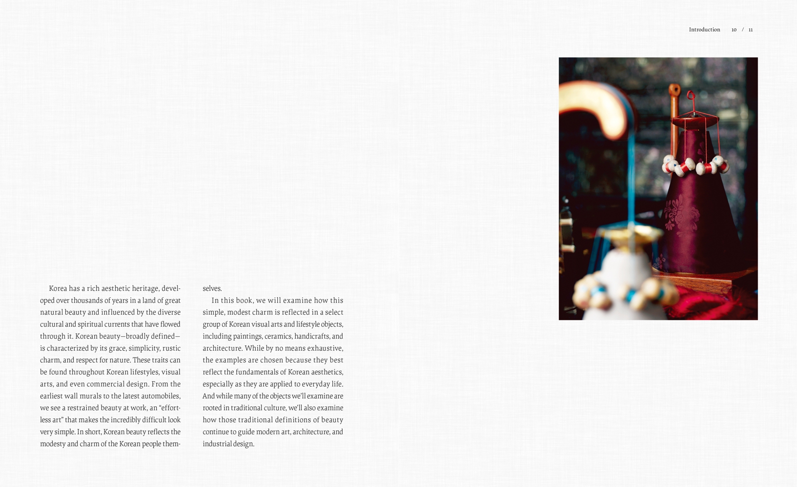 With a mixture of personal stories by someone who has traveled extensively around the country and fascinating insights about an aesthetic heritage developed over thousands of years, long-time Korea commentator and author Robert Koehler takes readers on a memorable trip into a land of breathtaking elegance and refinement that has influenced generation after generation of Koreans and the way they express beauty. As is clearly evident to anyone familiar with the country and its people, this sense of beauty can be generally characterized in terms such as grace, simplicity, rustic charm, and respect for nature. Of course, this ethereal sense of beauty and its functional application to day-to-day living goes far deeper than those broadly defined descriptions.