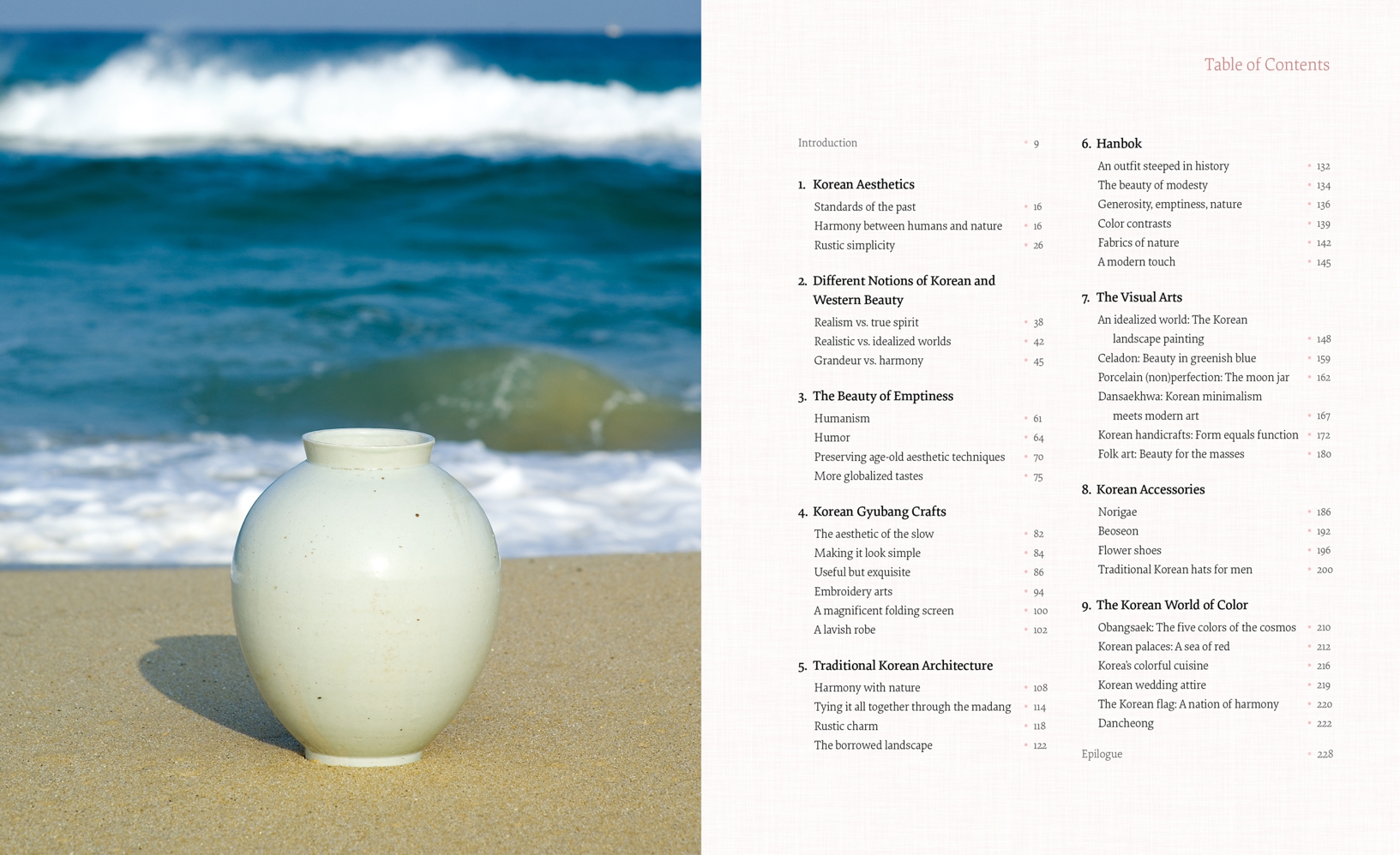 From the Buddhist and Taoist notion that there is great beauty in emptiness, to the extravagant visual appeal of modern hanbok and Korean accessories and boudoir crafts, to the fascinating method behind how Dansaekhwa monochrome paintings are created, Korea has practiced its own way of celebrating beauty for millennia. For those who have already started learning about Korea through its Hallyu-led movies, music, and television shows, Korean Beauty: Visual Expressions of a Timeless Spirit will only galvanize you to further your learning about the country and its profound, one-of-a-kind aesthetic. And for those just starting their odyssey down the road of Korean beauty, this book will inspire you to see more of the awe-inspiring splendor evident in this 5,000-year-old nation by experiencing Korea’s timeless spirit for yourself.