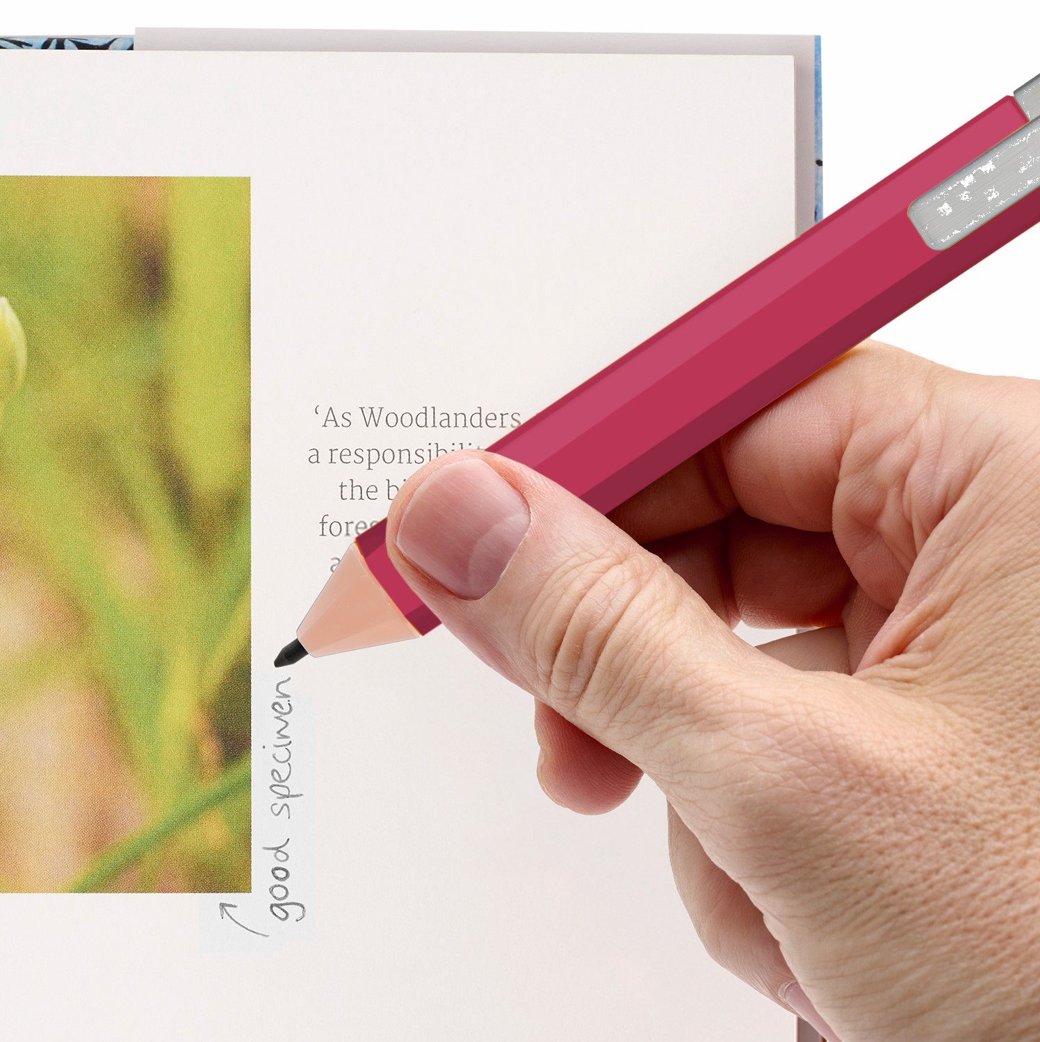 Entdecke Pencilmark: das ist der erste Bleistift, der so flach ist, dass du ihn problemlos als Lesezeichen verwenden kannst.