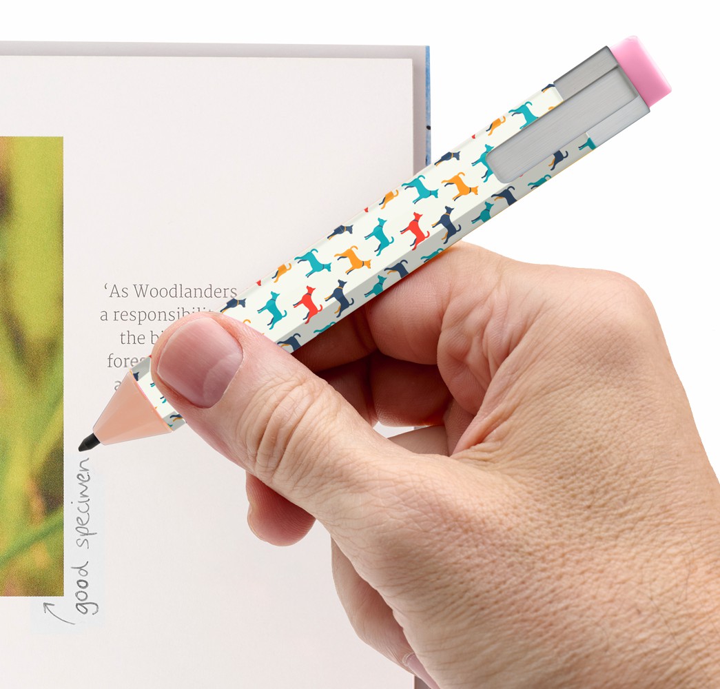 Entdecke Pencilmark: das ist der erste Bleistift, der so flach ist, dass du ihn problemlos als Lesezeichen verwenden kannst.