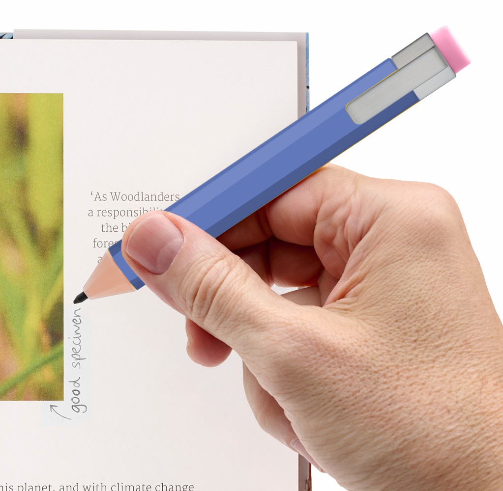 Entdecke Pencilmark: das ist der erste Bleistift, der so flach ist, dass du ihn problemlos als Lesezeichen verwenden kannst.