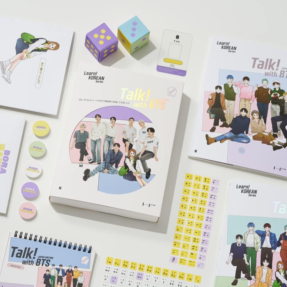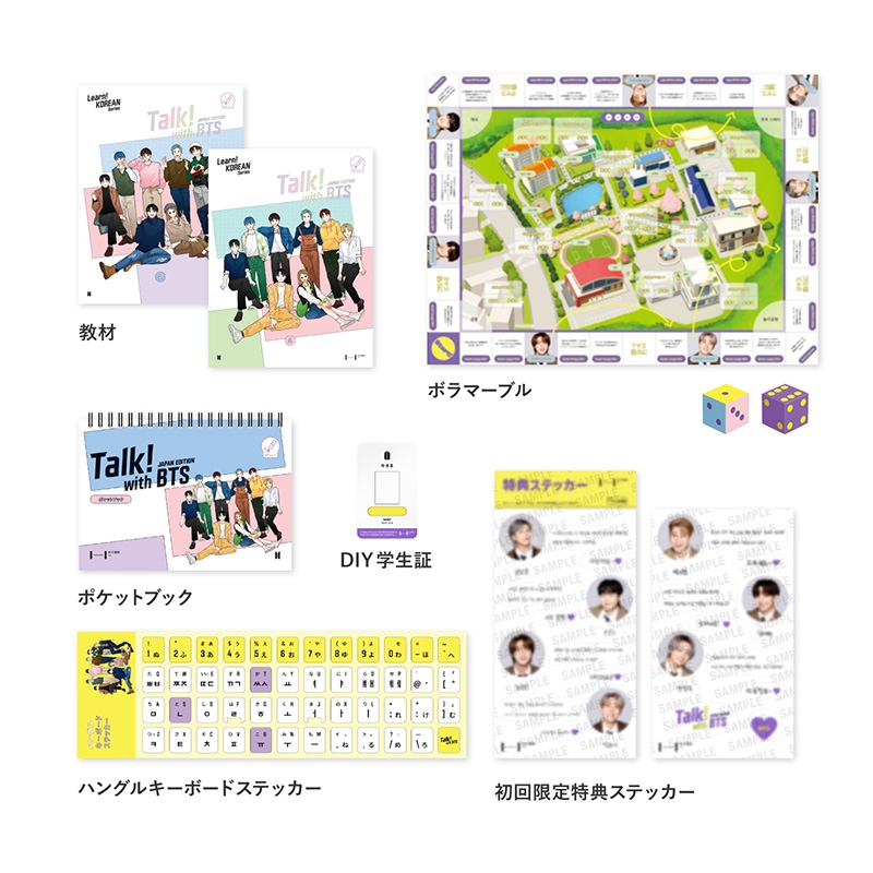 「Talk! with BTS」は「Learn! KOREAN with BTS」の後続レベルの商品で、ARMYであるボラが韓国のある大学に交換留学生として通うことによって起こる、1年間のストーリーを基盤にした韓国語教育コンテンツです。