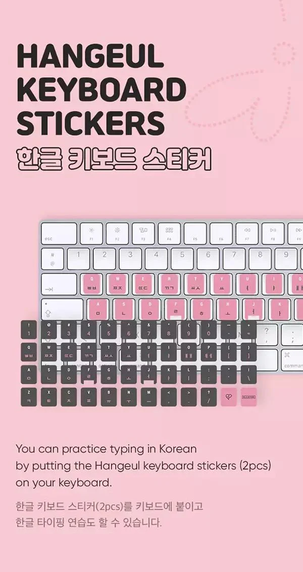 Practice typing in Korean with the included Hangeul keyboard sticker set.