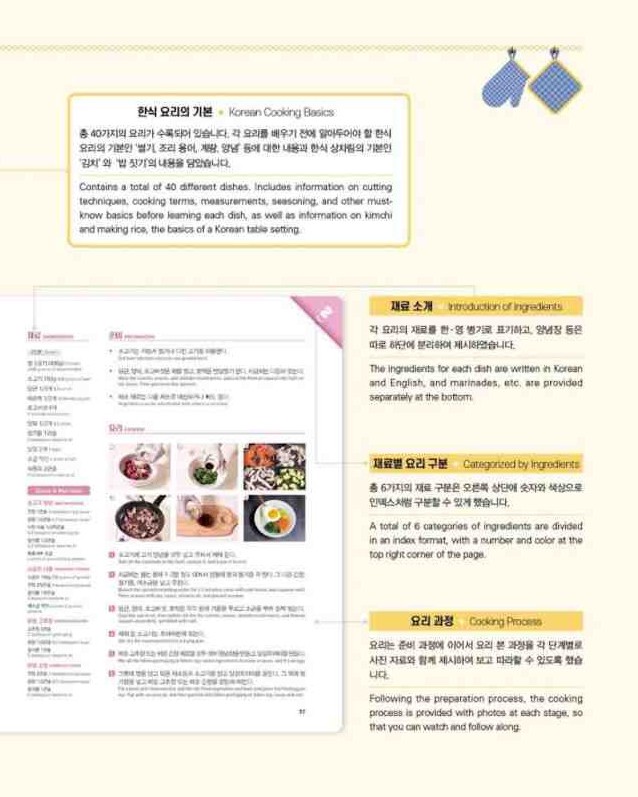 Introduction of ingredients and the cooking process are provided together in Korean and English for easier understanding.