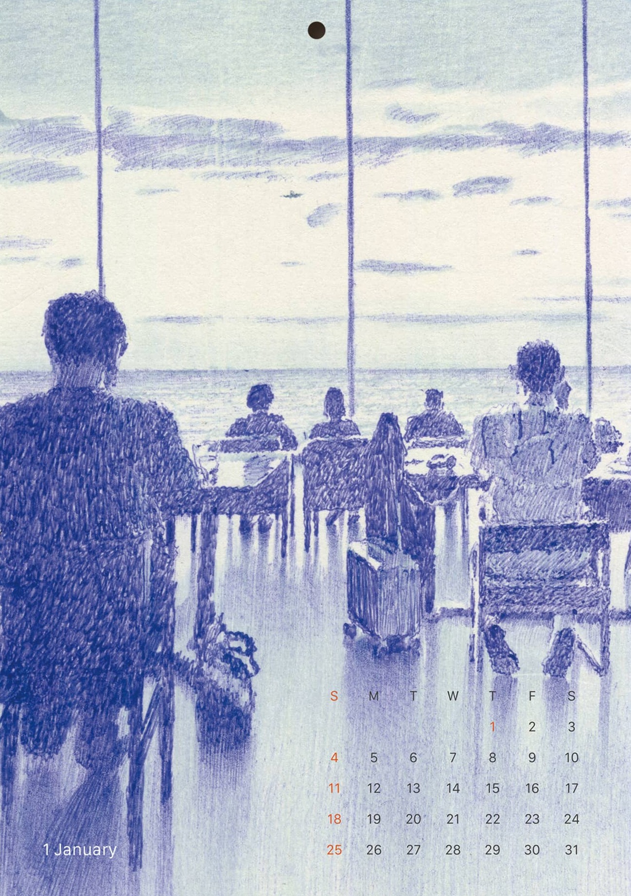 This is the eleventh wall calendar created in collaboration with Lee Gyutae, who works as an illustrator, cartoonist, and animator. The 2026 edition, titled “Drift 2026: Twelve Journeys,” features eleven illustrations, ranging from an airport capturing the moment of departure to scenes from different cities around the world. Like traveling through the year, a different scene unfolds each month.