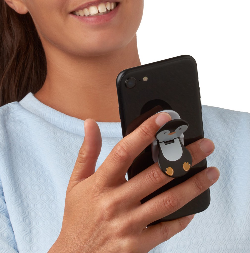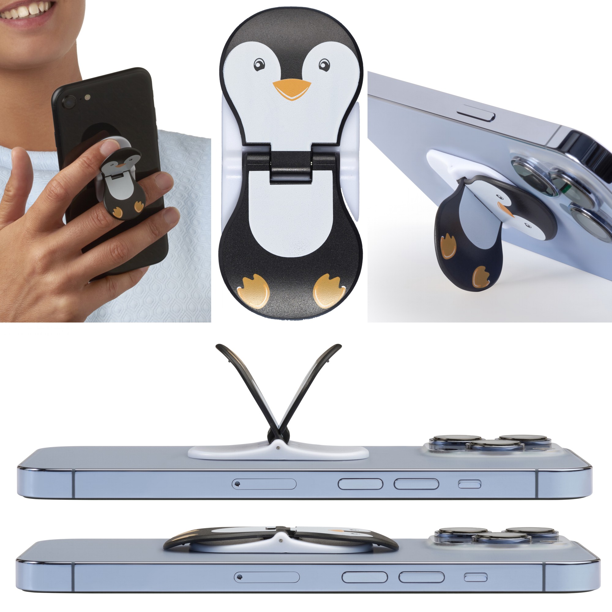 zipgrips (Pinguin) | 2 in 1 Handy-Griff & Aufsteller | Sicherer Griff | Halter für Smartphones